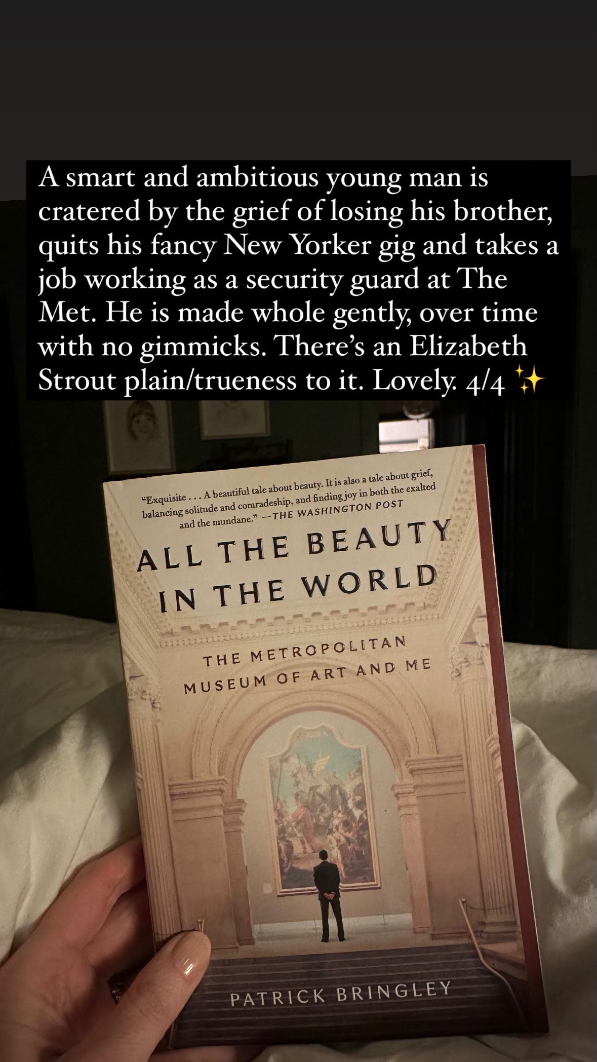 Including this one because the author is healed by the beauty of his workplace and colleagues. And time, of course, but we’re operating within a theme here.