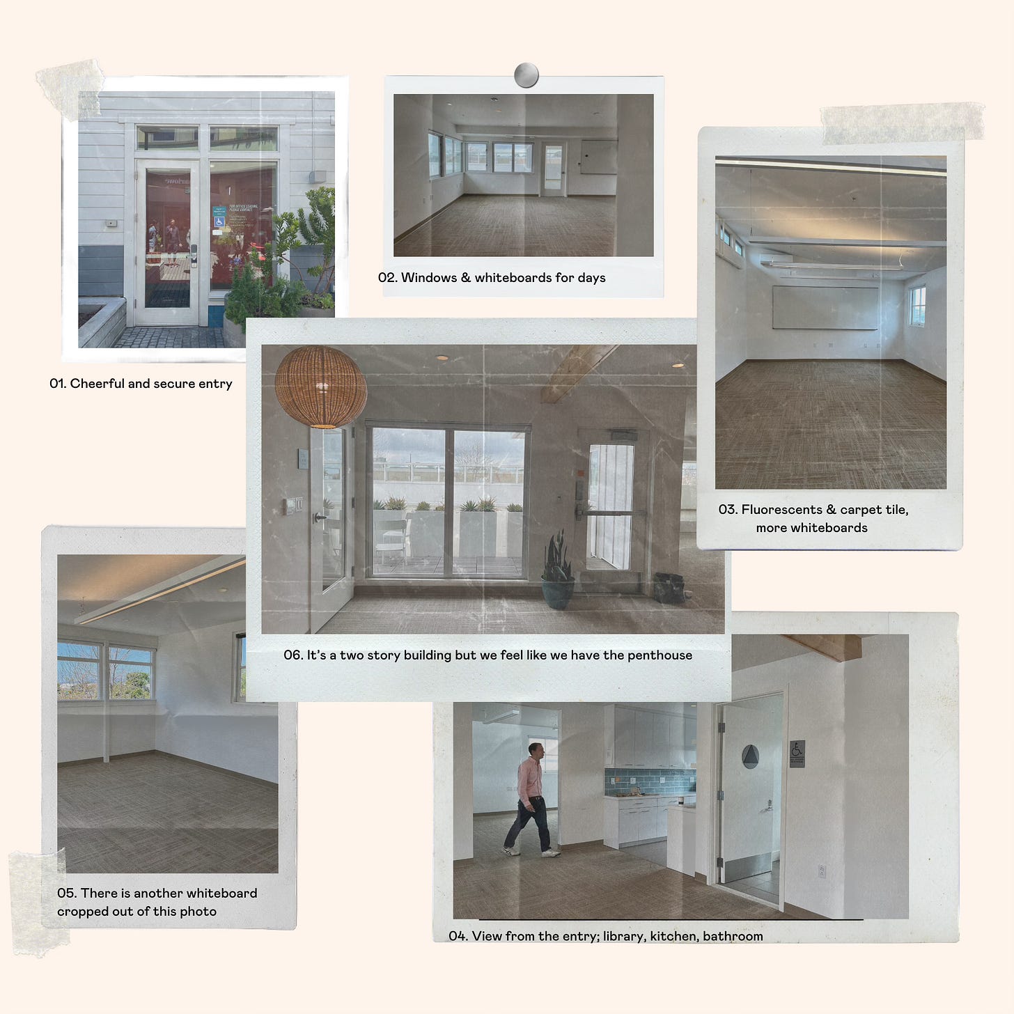 RL: [big eye roll] Commercial-contractor-grade start-up office. Does that do it? (Author’s note: here are some “before” photos to illustrate - we took this space for the light and the location. Literally any realtor could have told me to prioritize this 15 years ago but we live, we learn)