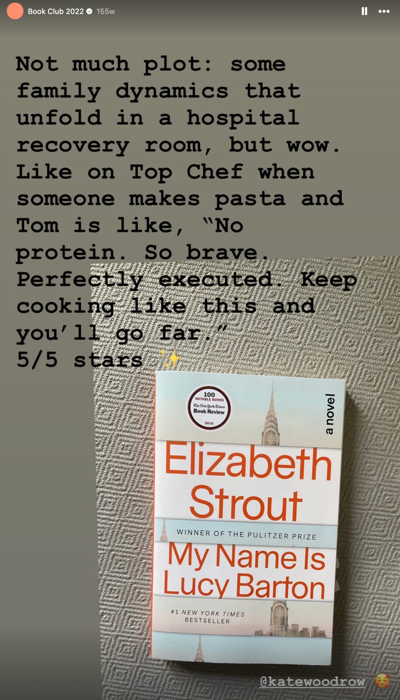 My Name is Lucy Barton! Why this, why now? Because much of it takes place in a bed, that’s why. Also it’s excellent.