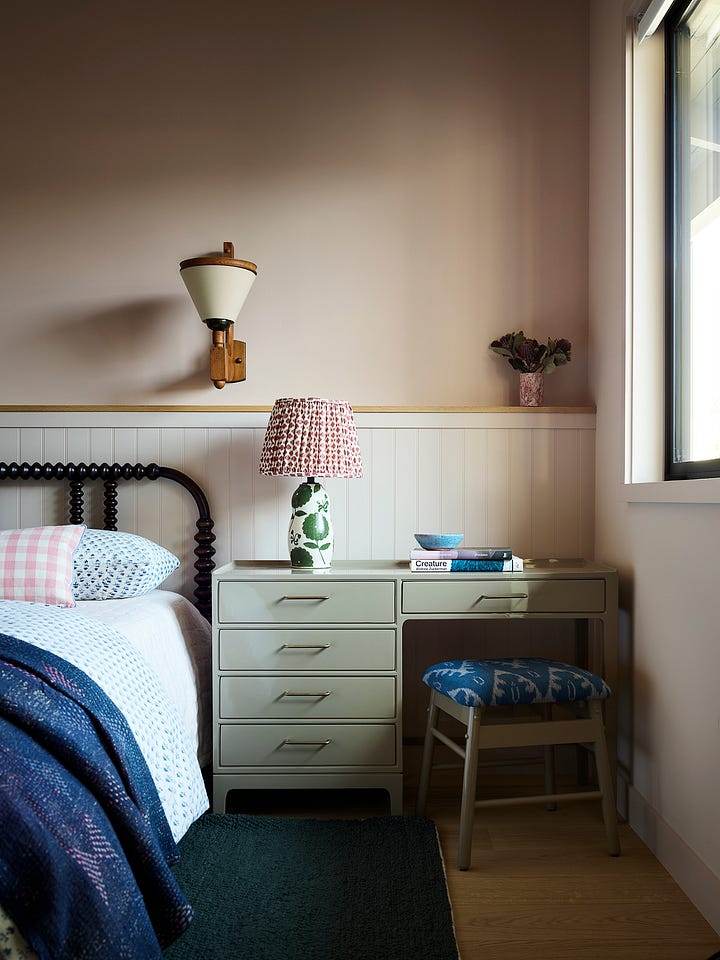 With that pettiness out of the way let’s nest, shall we? Cozy up and discuss the comfiest room in the house in great detail? Some of my favorite posts by the excellent Laurel Pantin are about Fancy Mom, and indeed it was the issue on every single detail of Fancy Mom’s bedroom where I finally navigated the Substack paywall maze to find out about her sheets. Fancy Mom was right, those sheets are worth it and they are linked below. But first I will share some of my favorite bedrooms RAD has done, and then I’m just going to break it down for you fine people. Five splurges and a steal that won’t change how the room looks much, but when it’s time to read or scroll or do your crossword in bed you will think you died and went to heaven.
